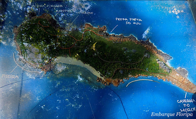Chegando lá, tem algumas opções de trilhas, para quem gosta de curtir uma natureza, sentir aquele ar puro, lá no meio do mar. Existem cinco trilhas na ilha, 3 delas que ficam no centro da ilha, que duram aproximadamente 1 hora de caminhada, e as outras duas trilhas do norte e sul da ilha, estão fechadas, segundo os monitores responsáveis pelas manutenções das trilhas.